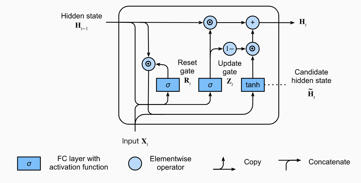 To address these concerns, GRUs support gating of the hidden state. Specifically, it introduces learned mechanisms for when a hidden state should be updated and when it should be reset.
