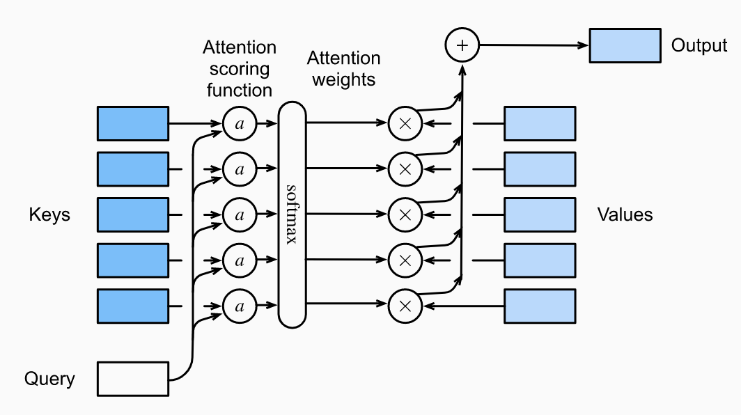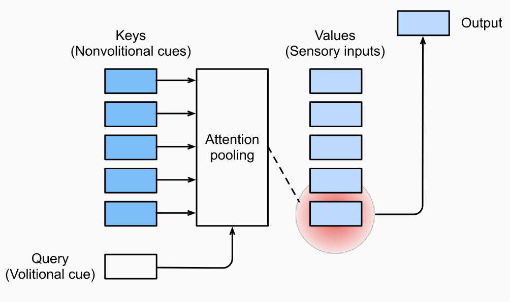 To formally define attention mechanisms, say we have a query and key-value pairs where and . Attention pooling is a weighted sum:
